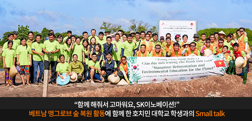 SK이노베이션과 베트남 학생들이 심은 것은 나무뿐만이 아니었습니다. 현지 주민들과 프로젝트를 진행하며 개발보다 환경 보호가 보다 우선됨을 함께 느끼고, 나아가 베트남을 넘어 지구의 환경을 위해 노력하고자 하는 의지도 심어주었는데요.