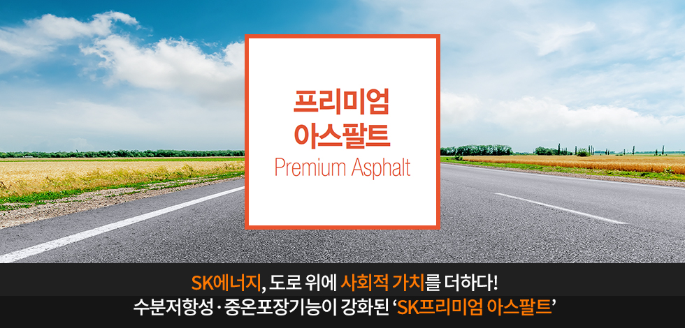 도로와 관련된 여러 사회적, 환경적 문제 해결에 기여하고, 안전한 운전 환경을 조성하기 위해 개발된 SK프리미엄 아스팔트! 앞으로도 SK에너지는 프리미엄 아스팔트 외 다양한 제품들을 개발, 생산하며 사회적 가치 창출에 힘쓸 예정입니다.