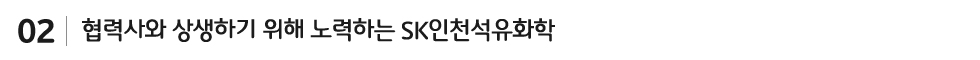 회사를 위해 함께 땀 흘리는 가족인 협력사와 동반성장 하기 위해 지속해서 노력하고 있는 SK인천석유화학! 앞으로도 SK인천석유화학은 협력사와의 상생을 바탕으로 안전∙보건∙환경 분야에서 사회적 가치를 창출해 나갈 예정입니다.