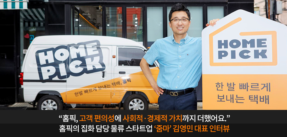 홈픽 서비스에서 고객으로부터 신속하게 택배를 가져다 주유소로 운송하는 역할을 담당하는 물류 스타트업 ‘줌마(ZOOMMA)’의 김영민 대표를 만나 이야기를 들어보았습니다.