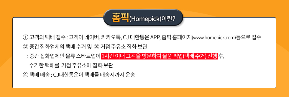 택배 업계 최초, 고객이 원하는 시간과 장소에서 물품을 집화(Pick up)하는 신개념 서비스인 홈픽(Homepick)의 실제 사용담입니다.