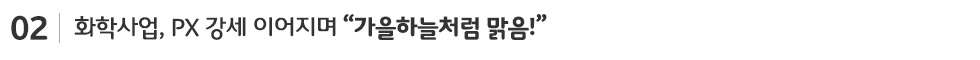 이는 신규설비의 ‘저율 가동 이슈’가 올해 연말까지 지속될 것으로 보이는 데다 중국 흥리(Hengli) PX 설비 가동이 빨라야 내년 하반기나 돼서야 가능할 것으로 전망되고 있기 때문이다. 현대차증권 강동진 연구원은 관련해 “PX 호조는 최소한 2019년 상반기까지 지속될 전망”이라고 밝혔다.