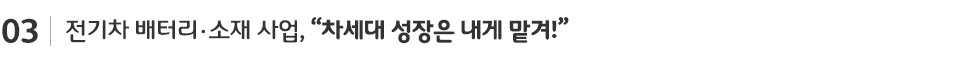 SK이노베이션은 차세대 성장 동력인 전기차 배터리 및 소재 사업에 현재 역량을 집중하고 있다. 이와 관련 현대차증권 강동진 연구원은 “2차전지의 산업 과점화로 SK이노베이션도 충분한 기회를 얻을 것”이라며 “또한 시장을 리드하고 있는 분리막(CCS: Ceramic Coated Separator) 사업 역시 고성장이 기대된다”고 강조했다.