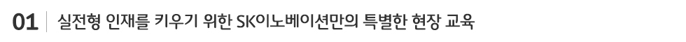 실제 작업 현장에서 진행되는 연수인 만큼, SK이노베이션이 최우선으로 생각하는 안전∙보건·환경(SHE*) 교육으로 SK 울산CLX 과정을 시작했습니다. 선진 안전경영시스템을 추구하고 있는 SK이노베이션의 ‘SHE First 경영’을 이해할 수 있는 시간이었습니다.