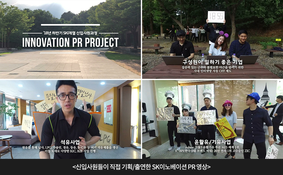 다음은 신입사원들이 직접 기획하고 출연한 ‘SK이노베이션 PR 영상’을 다 함께 감상했습니다. 원테이크(one take)로 찍느라 NG도 많이 내고 어려웠지만, 덕분에 많은 추억을 쌓을 수 있었답니다.