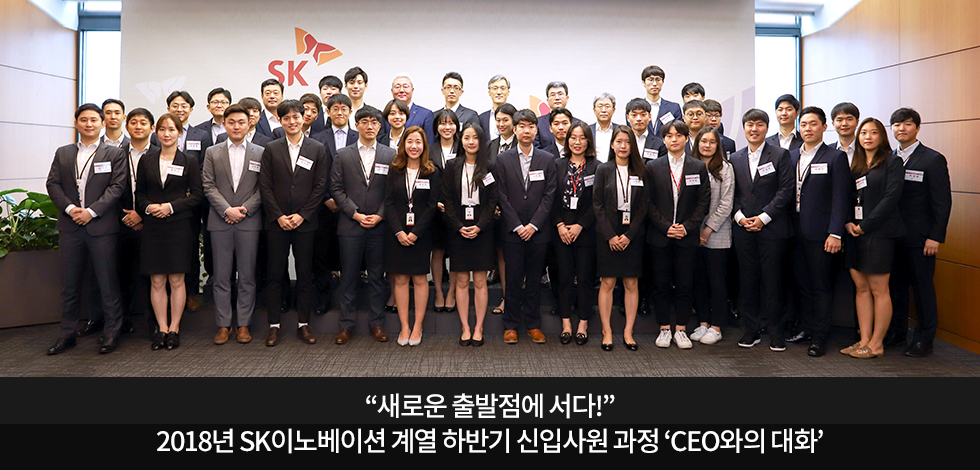 지난 8월 24일 진행된 SK이노베이션 계열 2018년 하반기 신입사원 과정 ‘CEO와의 대화’ 현장! 교육 첫날, 설렘과 긴장이 가득했던 신입사원들의 모습은 자신감과 패기 넘치는 모습으로 바뀌어 있었는데요. 이제 정말 ‘실전형 인재’의 눈빛이 보이는 것 같죠?