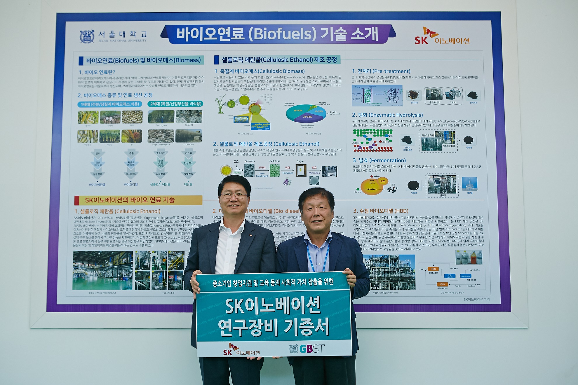이 행사에는 SK이노베이션 기술혁신연구원 이성준 원장과 서울대학교 그린바이오 과학기술연구원 최인규 원장 등 관계자 100여명이 참석했다.