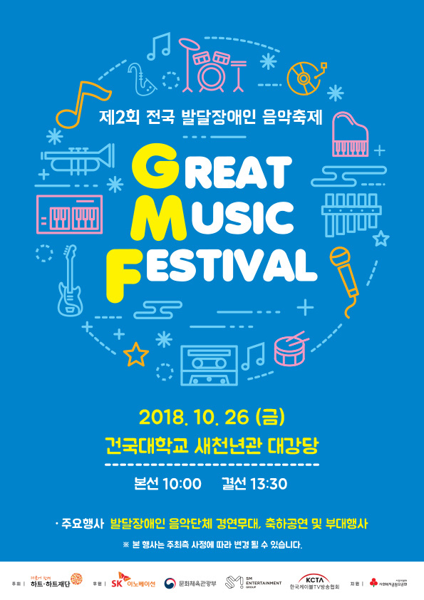 한편 발달장애인음악축제_Great Music Festival은 발달장애인 사회성 향상을 위해 하트하트 재단과 SK이노베이션이 지난해 1회 대회를 개최했다. 이번 대회에는 하트-하트재단이 주최하고 문화체육관광부, SK이노베이션, SM엔터테인먼트가 후원한다.