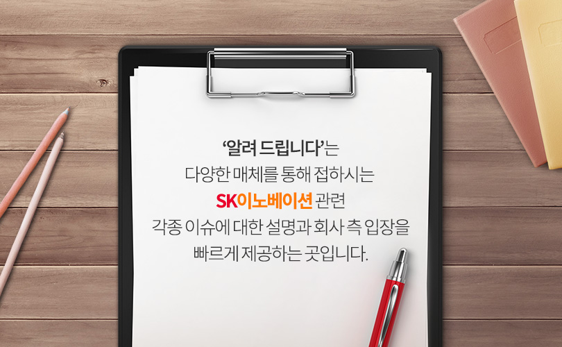 알려 드립니다 2018. 10. 25 SK이노베이션 알려 드립니다 AI 요약 AI 보이스 미디어 키트 이전글 다음글 연관 콘텐츠 INNO FOCUS “안전성이 미래 배터리 시장을 좌우한다” – ‘더 배터리 컨퍼런스 2021’서 만난 SK이노베이션 이존하 Battery개발센터장 2021.06.16 INNO FOCUS “우리 함께 Say Hi하고 Go High해요!” – SK에너지 Platform사업개발TF LDP Unit 조동섭 사원 인터뷰 2020.06.16 PEOPLE & CULTURE 기업 뉴스 채용 담당자들이 말하는 SK이노베이션 채용 – “면접을 즐기세요!” 2018.01.30 기업 뉴스 SK이노베이션 신입사원 채용! 그것이 알고 싶다 2017.09.25