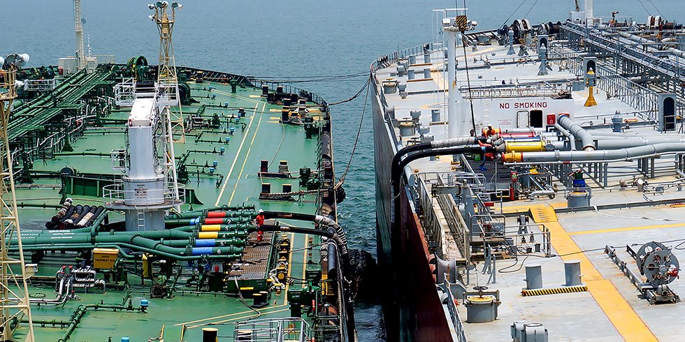 ▲ 싱가포르-말레이시아 인근 해상에서 진행 중인 SK트레이딩인터내셔널의 저유황중유 블렌딩