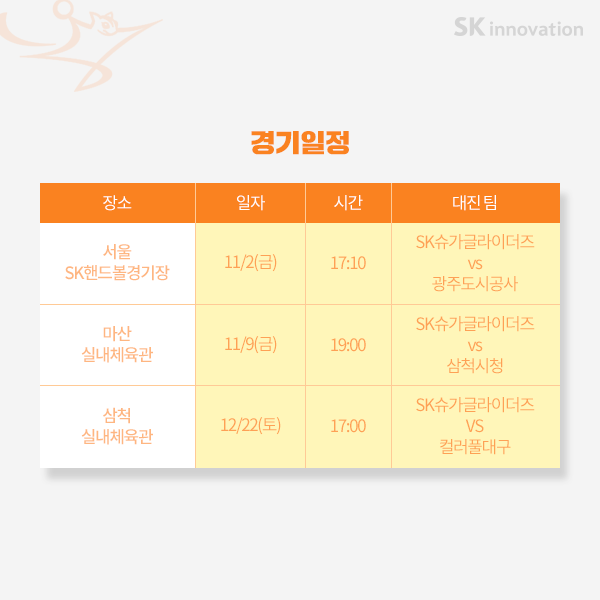 지난 해에 이어 2년 연속 SK슈가글라이더즈의 우승을 기원하며