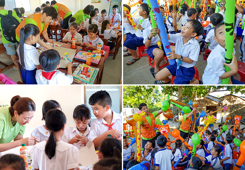 22일, SK이노베이션 임직원 자원봉사자들은 맹그로브 묘목 식수를 끝내고 짜빈 성에 위치한 미롱남B(My Long NamB) 초등학교에 방문했다. 자원봉사자들은 이 곳에서 현지 아이들에게 학용품과 간식을 나눠주고 풍선, 비누방울 놀이 등을 함께 하며 즐거운 시간을 보냈다.