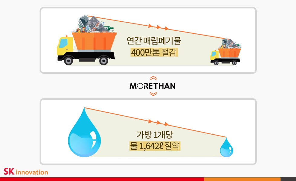 모어댄은 자동차 시트 제작 후 남은 자투리 가죽이나 에어백, 안전벨트를 재사용해 제품을 만든다. 이로 인해 가방 한 개를 제작할 경우, 폐기물을 태우거나 매립할 때 발생하는 이산화탄소와 사회적 비용도 줄일 수 있을 뿐 아니라 1,642 리터의 물을 절약할 수 있다.