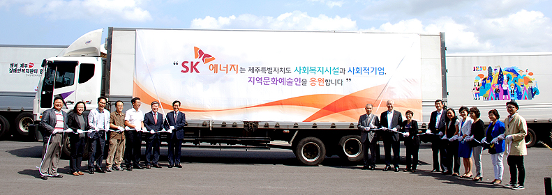 지난달 26일 SK에너지는 제주시 도련동에 위치한 내트럭하우스에서 사회적기업과 사회 복지 시설 홍보 디자인이 포장/도색된 화물차들을 공개했는데요.