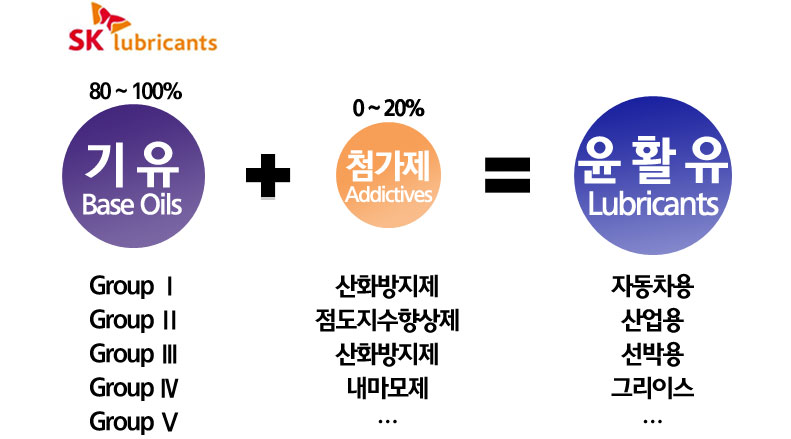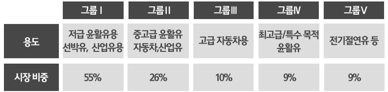 참고로 윤활기유는 제품의 점도와 황 함량에 따라 5개의 등급으로 나눠지는데요. 그룹Ⅴ로 갈수록 점도가 높고 황함량이 낮아, 좋은 기유로 인식되고 있고 통상적으로 그룹 Ⅲ부터를 고급기유로 보고 있습니다.