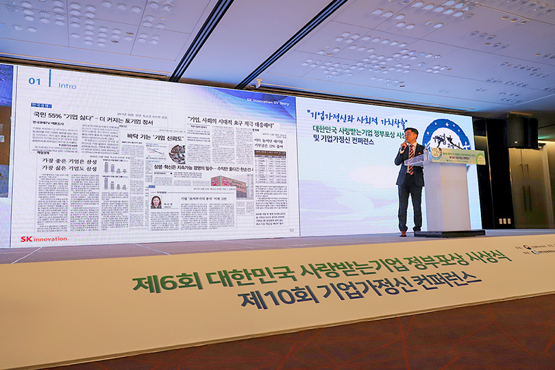 ▲ 지난 11월, 제10회 기업가정신 컨퍼런스에서 SK이노베이션의 사회적기업 우수 사례에 발표하는 엄상홍 부장