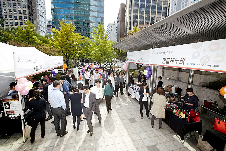 지난 5일부터 8일까지 SK이노베이션의 본사에서 사회적 기업 행복장터가 열렸는데요. 고마운손, 꼬마농부 등 사회적 기업 7곳이 참여해 많은 관심 속에서 진행됐습니다.