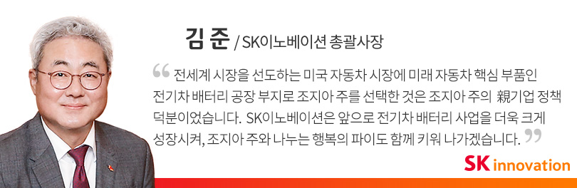 지난 1월 4일(현지 시간), SK이노베이션은 신규 배터리 공장이 설립될 미국 조지아 州 애틀랜타 주청사에서 조지아 주와 투자 양해각서 (MOU)를 체결했다. 조지아 주정부는 이번 MOU가 창출할 교용 효과와 SK이노베이션의 기부금으로 인한 사회적 가치 창출 등에 깊은 관심을 표하며 보도자료를 배포하기도 했다.