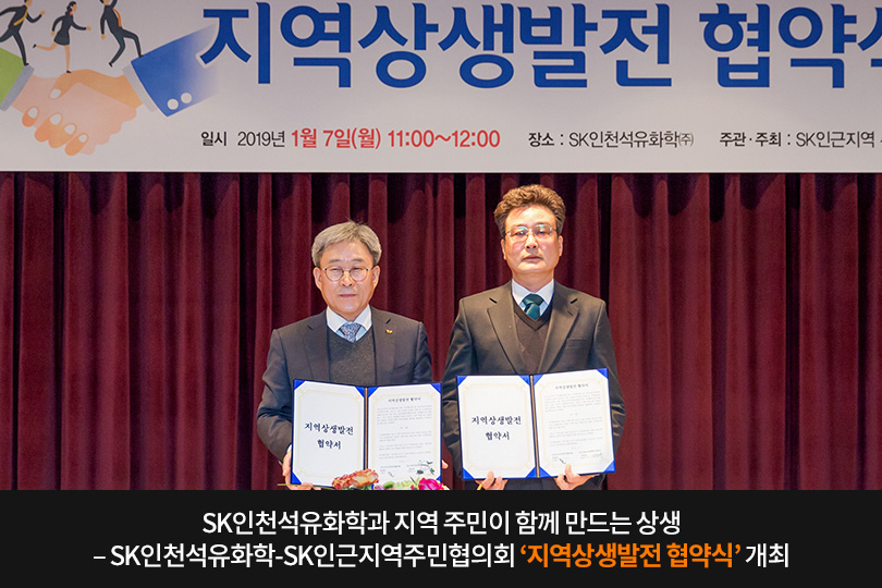 SK인천석유화학과 SK인근지역주민협의회(이하 주민협의회)는 1월 7일, SK인천석유화학 본관 강당에서 ‘지역상생발전 협약식’을 개최했다.
