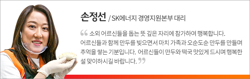 SK 울산CLX 임직원 자원봉사자들이 정성과 마음으로 빚은 만두 2,500여 개와 떡국 선물은 지역 내 독거노인 200여 세대와 경로당에 전달되었다.