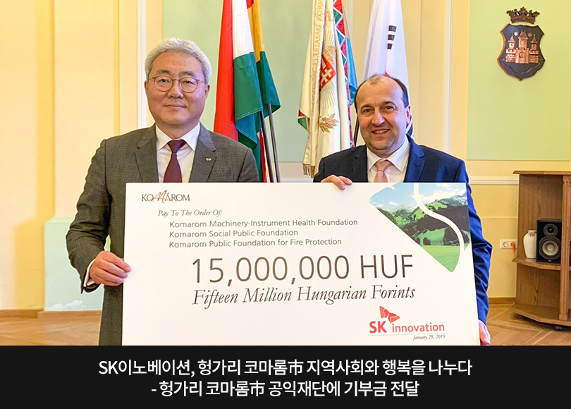 SK이노베이션이 지난 1월 29일(현지시간), 헝가리 코마롬(Komárom)市 공익 재단에 2년 간 1천 5백만 포린트(약 6천만 원) 규모의 기부금을 전달했다.