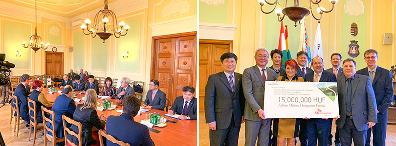 코마롬 시청에서 진행된 기부금 전달식에는 SK이노베이션 김준 총괄사장과 Attila Molnár 코마롬 시장을 비롯한 공익 재단 관계자들이 참석했다.