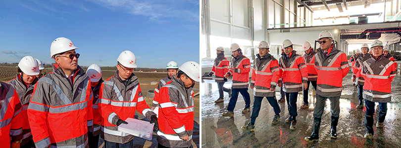 ▲ 헝가리 배터리 공장 건설 현장을 둘러보고 있는 SK이노베이션 김준 총괄사장