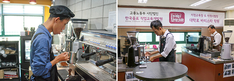 ▲ 커리어 점프업 클래스에서 바리스타 수업을 받고 있는 김정환씨