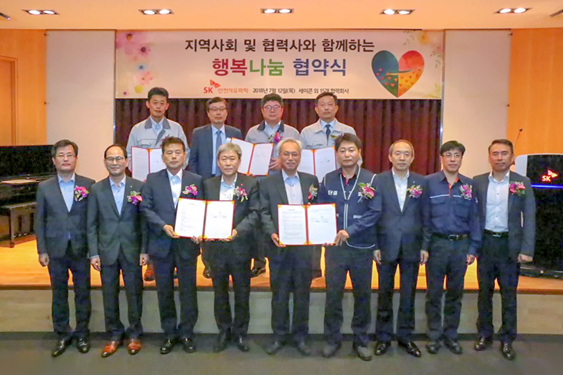 ▲ SK인천석유화학이 지난해 7월 진행한 ‘1% 행복나눔 협약식’