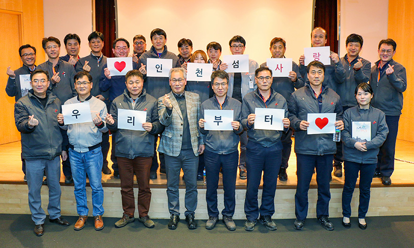 ▲ 2017년 12월, ‘인천섬의 자연과 역사문화’를 주제로 인천 삼산고등학교 김기룡 교장 초청 특강을 들은 SK인천석유화학 임직원들