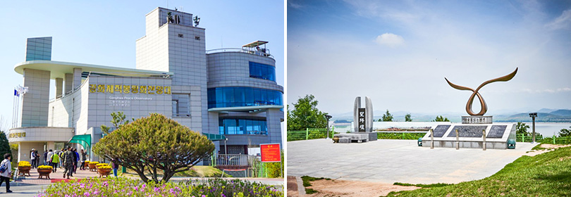 2008년 평화통일 기원과 고향에 가지 못하는 실향민들을 위해 지어진 강화평화전망대. 전망대에서 북한의 개풍군까지 최단 거리는 2.3km로, 북한을 육안으로 볼 수 있는 가장 가까운 곳이다.