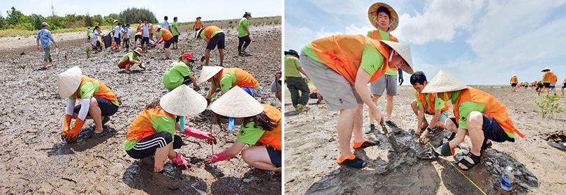 SK이노베이션의 ‘1% 행복나눔기금*‘ 후원 테마 중 하나인 맹그로브 숲 복원사업’은 SK이노베이션의 글로벌 사회공헌 활동의 일환으로, 베트남 짜빈 성 지역의 맹그로브 숲 조성, 호치민 기술대의 맹그로브 복원 연구 등을 지원하고 있다.