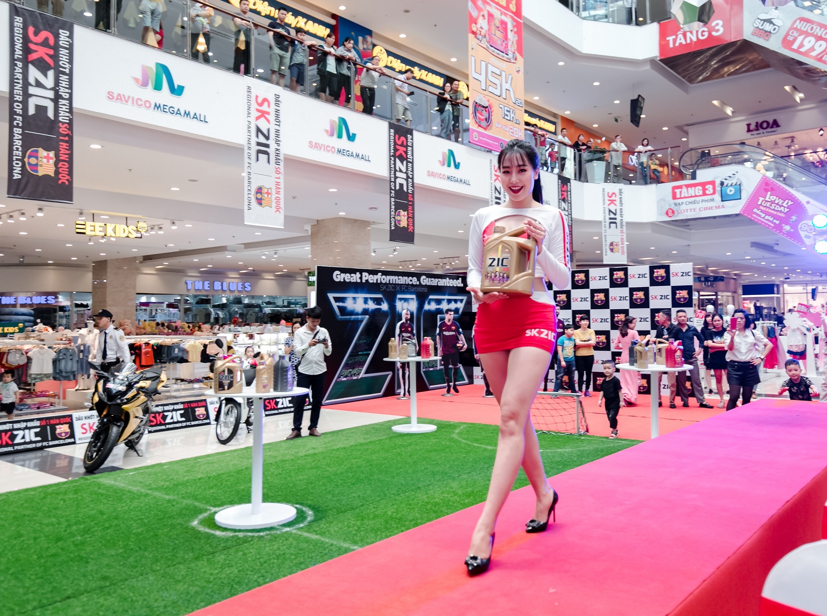 사진2) 베트남 하노이 시에서 열린 SK ZIC-FCB 브랜드 런칭 행사에서 SK루브리컨츠 모델이 FC바르셀로나 선수 이미지가 부착된 SK ZIC제품을 선보이고 있다.
