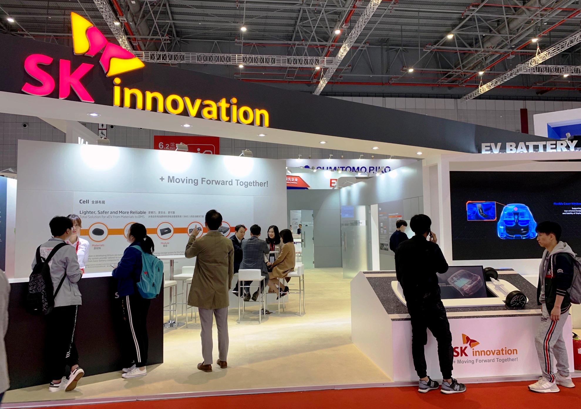 SK이노베이션은 ‘함께 앞으로(Moving Forward Together)’라는 슬로건 아래 전기차 배터리 제품 및 LiBS, FCW 등 SK이노베이션 계열의 첨단 미래차 관련 핵심부품을 전시한다. 이와함께 글로벌 완성차 고객사들을 만나는 등 중국 시장 동향 파악에 나섰다.