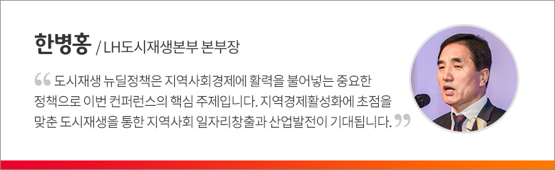LH도시재생본부 한병홍 본부장의 환영사로 시작한 컨퍼런스는 우리나라 외 영국, 네덜란드, 일본 등 총 4개국 6명의 전문가가 민간참여, 혁신지구, 청년창업, 스타트업 등을 주제로 진행되었다.