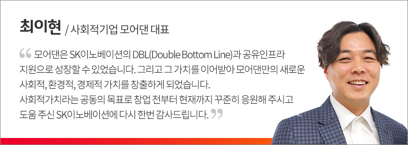 SK이노베이션은 사회적기업 ‘모어댄’의 설립 지원뿐 아니라 장기적인 파트너십을 맺고 계속해서 전방위적으로 지원하고 있다.