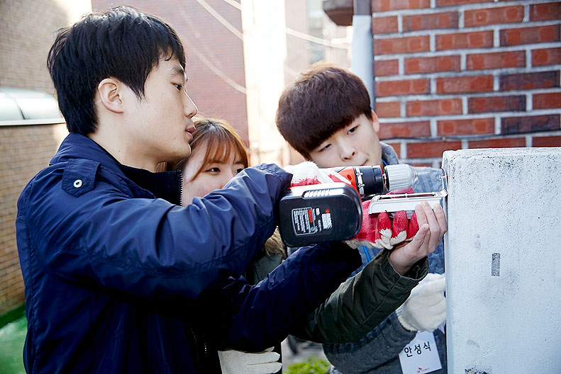 처음 잡아보는 전동공구지만, 지역주민들의 안전을 지킨다는 열정으로 능숙하게!