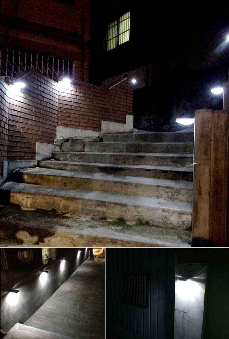 계단에는 밤길 시야를 밝게 해주기 위한 페인트칠