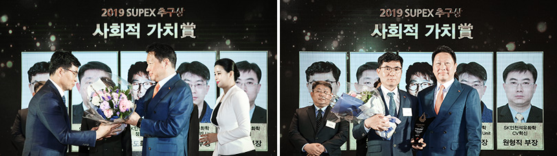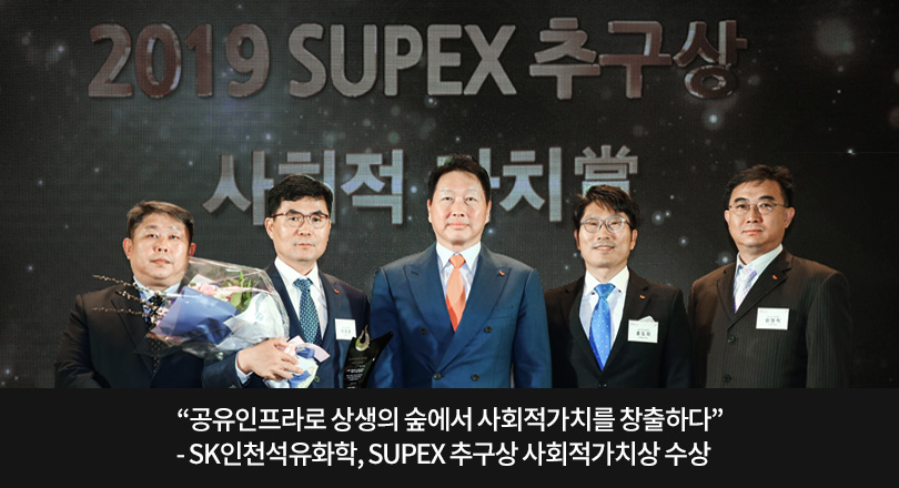 SK이노베이션의 자회사 SK인천석유화학은 지난 4월 23일, 워커힐 아카디아에서 개최된 ‘2019 SUPEX 추구상 시상식’에서 ‘사회적가치상’을 수상했다. 이 자리에는 SK그룹 최태원 회장을 비롯해 SUPEX 추구협의회 조대식 의장 및 수상자 등 관계자 100여 명이 참석했다.