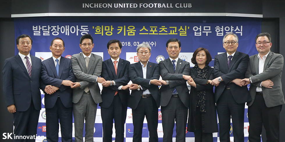 SK인천석유화학은 발달장애아동의 신체발달과 사회적응력 향상을 위해 지역 4개 프로스포츠 구단(SK와이번스, 인천유나이티드FC, 신한은행 에스버드 여자농구단, SK슈가글라이더즈 여자핸드볼구단) 등이 참여하는 ‘희망키움 스포츠교실’을 운영하는 등 복지 사각지대에 놓인 소외계층 교육에 힘쓰고 있다.