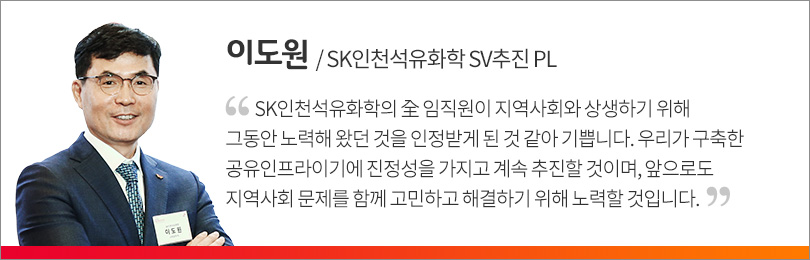 이를 위해 SK인천석유화학은 올해 1월, SK인근지역주민협의회와 지역상생발전 협약식’을 개최하는 등 이해관계자들과의 소통 창구를 만들었다.