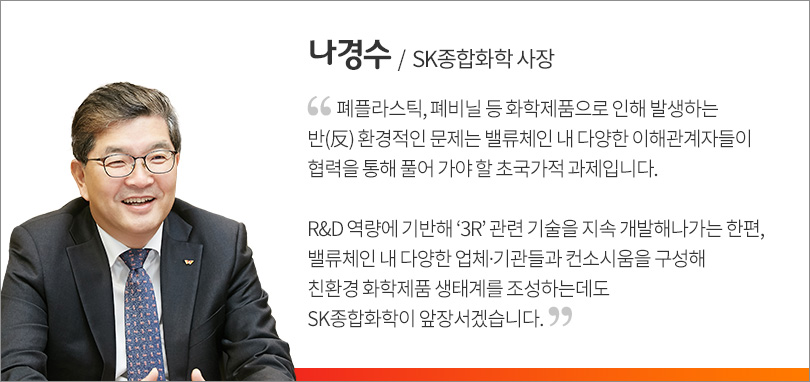 국내 대표 석유화학 기업인 SK종합화학이 회사가 가진 기술력과 R&D 역량, 밸류체인(Value chain) 내 협력을 기반으로 3R 전략을 적극 추진하고, 초국가적인 이슈인 폐플라스틱∙폐비닐 등 환경 문제 해결에 선제적으로 나선 것이다. 이는 독한 혁신으로 SK이노베이션의 그린 밸런스 전략*을 적극 실천하겠다는 SK종합화학의 의지다.