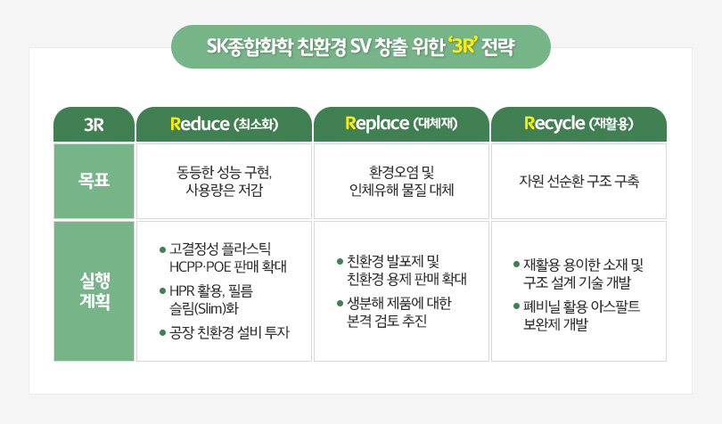 | SK종합화학의 비즈니스 중심 ‘3R(Reduce∙Replace∙Recycle)’ 전략