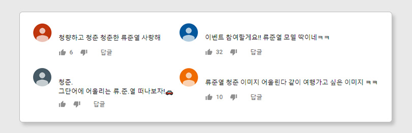 SK오일로패스 광고 영상에 등장하는 배우 류준열도 한몫 했다. ‘청춘’, ‘여행’ 등의 키워드와 잘 어울리는 류준열이 등장한 광고를 본 응모자들은 “준열에게 딱 맞는 청량 광고”, “청춘, 그 단어에 어울리는 류준열” 등 광고와 모델의 높은 싱크로율에 대한 긍정적인 반응이 이어졌다. “나이는 25-35가 아니지만 마음은 청춘”이라며 청춘들을 부러워하는 댓글이 달리기도 했다.