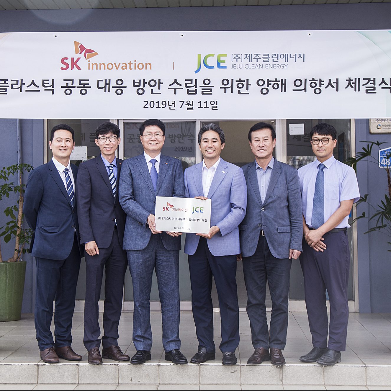 왼쪽에서 세번째가 SK이노베이션 이성준 기술혁신연구원장, 왼쪽에서 네번째가 제주클린에너지 김태윤 대표