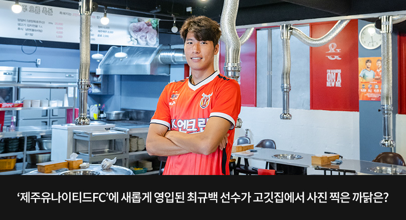 최규백 선수의 영입 오피셜 사진의 배경이 배가 정박해 있는 포구, 돼지고기를 파는 음식점이었기 때문이다. 보통 축구단들은 선수를 영입을 하게 되면 구단 사무실 대형 로고 앞이나 홈 경기장에서 공식 유니폼을 입은 선수 사진을 촬영해 영입 오피셜 이미지로 공개한다. 또는 평범한 프로필 사진에 환영 문구를 삽입하는 등 약간의 디자인 작업을 거친 이미지를 내놓기도 한다. 제주UTD는 이 같은 기존의 틀을 깨고 신선하고 색다른 ‘고깃집 화보’로 팬들에게 최규백 선수의 영입 소식을 전했다.