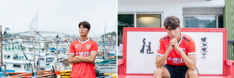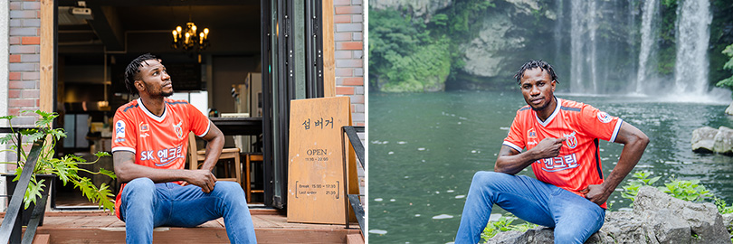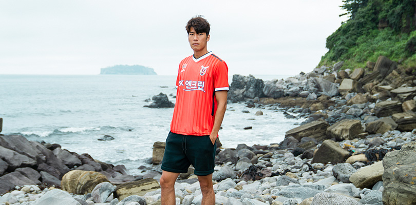 ▲ 제주 명소와 제주UTD ‘후원의 집’ 홍보를 위해 촬영한 최규백 선수의 영입 오피셜 사진