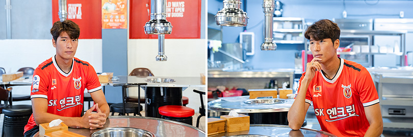 ▲ ‘고깃집’에서 촬영한 최규백 선수의 영입 오피셜 사진