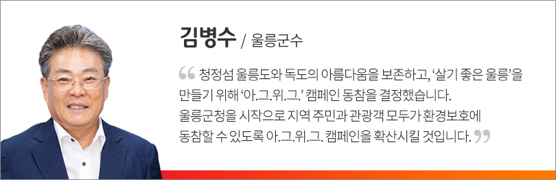 이번 협약으로 SK이노베이션과 울릉군청, UN환경계획 한국협회는 지구 온난화 대응 및 울릉도와 독도 환경보호를 위해 울릉도 내에서 ‘아.그.위.그.(I Green We Green)’ 캠페인을 시행하기로 했다. ‘아.그.위.그.’ 캠페인은 ‘나’의 생활 속 작은 실천을 통해 ‘우리’가 속한 환경을 푸른 빛으로 만들자는 의미를 담은 친환경 캠페인으로, SK이노베이션과 UN환경계획 한국협회가 공동 주관하는 일회용품 사용 저감 운동이다.