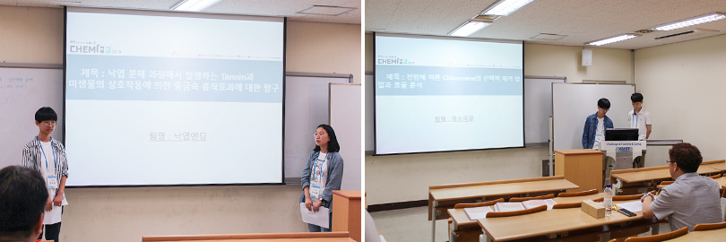 ‘제16회 화학탐구프런티어페스티벌’에는 총 250팀이 참가했으며, 그 중 67개 팀만이 본선에 진출했다. 이번 본선에서는 1차 포스터 평가와 함께 프레젠테이션 발표가 진행됐다.